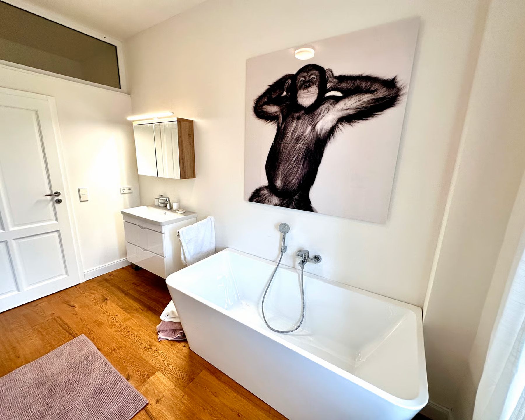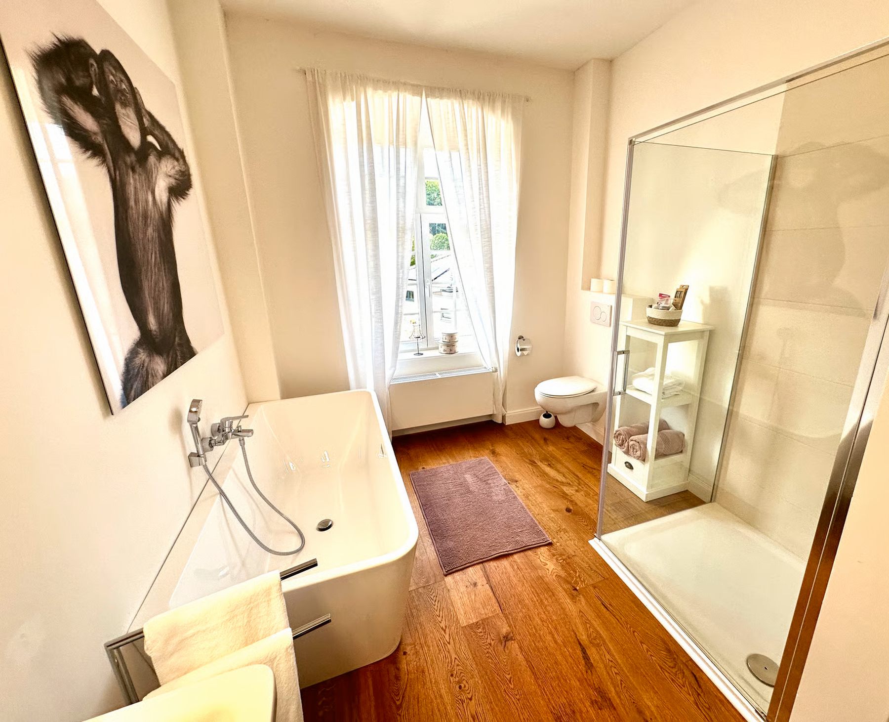 Zu Fuß erreichen Sie bequem die Sieg, die umgebenden Wälder, aber ebenso Supermarkt, Biergarten und Restaurants.