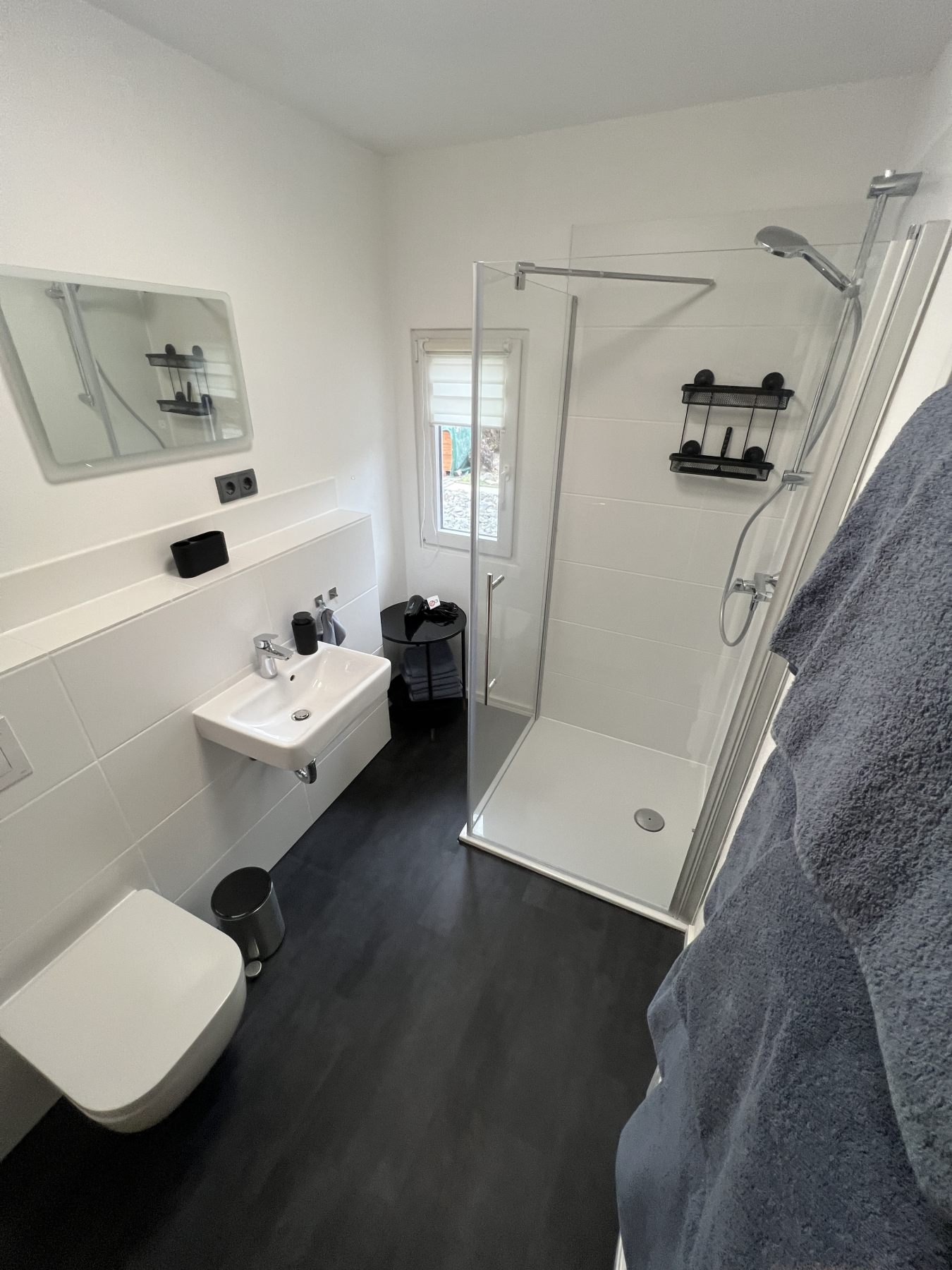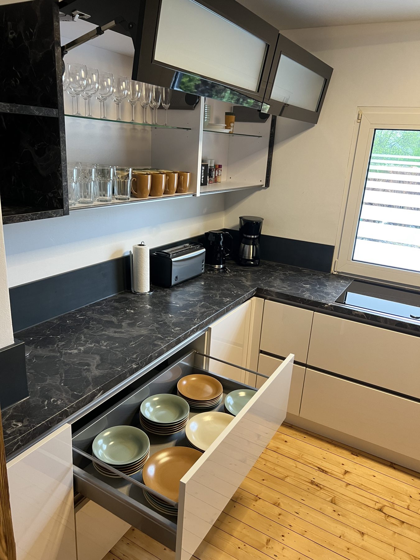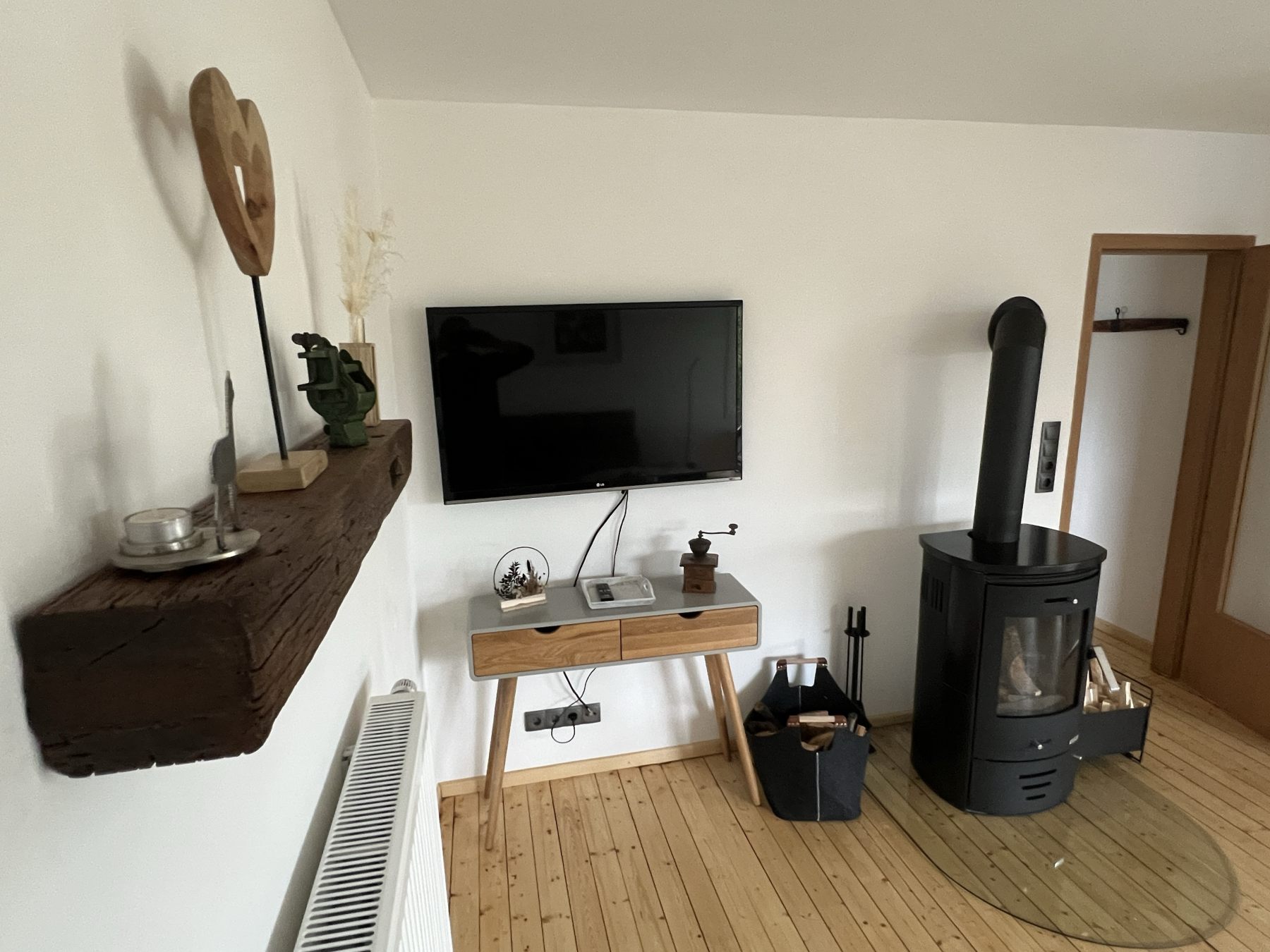 Wohnungsausstattung: Hochwertige Ausstattung, barrierefreies Duschbad, moderne Küche, Kaminofen, Echtholzböden, Hottub mit Whirlpoolfunktion und Fasssauna.
