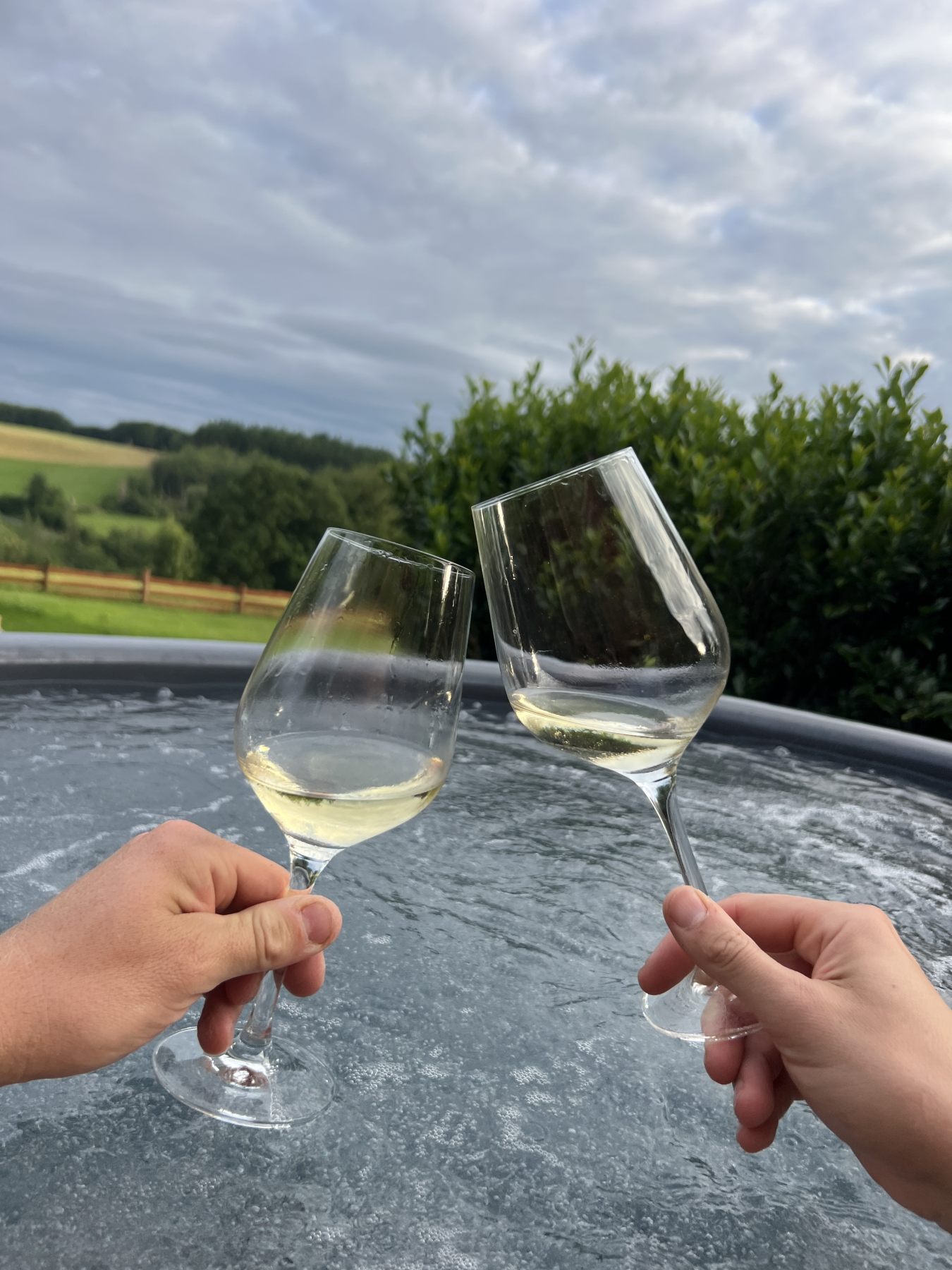 NEU! Wir haben nun einen superschicken OUTDOOR HOTTUB mit Wasserfilter und Whirlpoolfunktion! Dieser wird für jeden Gast (auf Wunsch clorfrei) mit unserem weichen, frischen Talsperren Trinkwasser gefüllt. Den HotTub bieten wir inkl. Brennholz zum Erwärmen des Wassers (1,5 qm) für eine mehrmalige Benutzung mit Filteranlage an. Genießen Sie diesen Whirlpool mit oder ohne Saunabenutzung zu jeder Jahreszeit! Preis pro Befüllung € 75,-. Bei der Nutzung ab 3 Tagen € 100,- inkl. Brennholz pro Woche . Er bietet Platz bis zu 6 Personen 8 (evtl auch mehr :-)). Eine gemütliche Angelegenheit, besonders bei ungemütlichen Termperaturen!