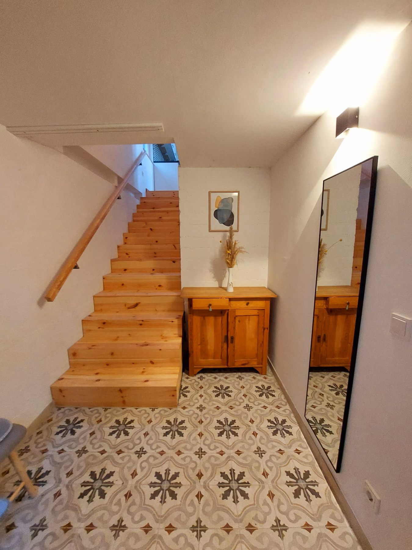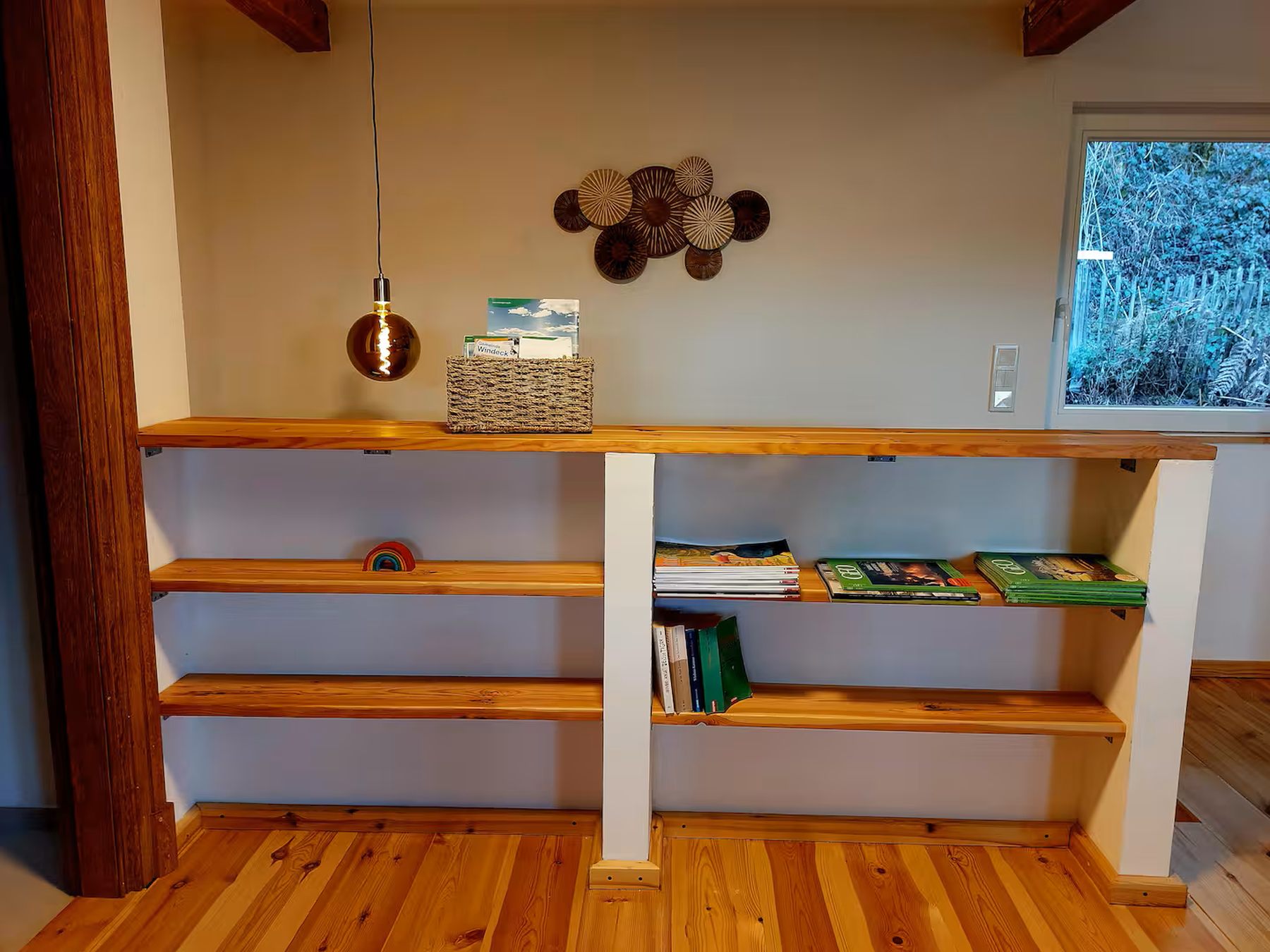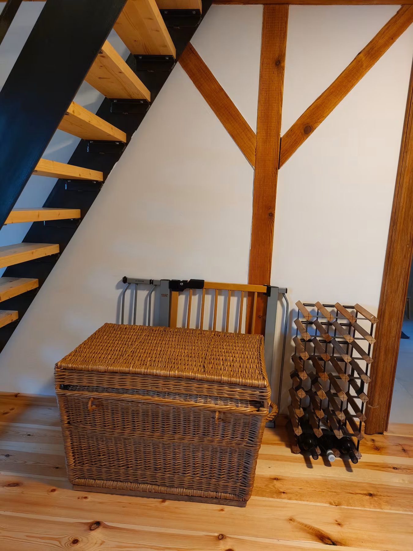 Die Ferienwohnung haben wir 2024 fertiggestellt. Dabei haben wir besonderen Wert auf nachhaltigen und ressourcenschonenden Materialeinsatz gelegt (ökologisches Dämmmaterial, Naturholzboden, aufgearbeitete alte Holztüren aus Wohnhaus).