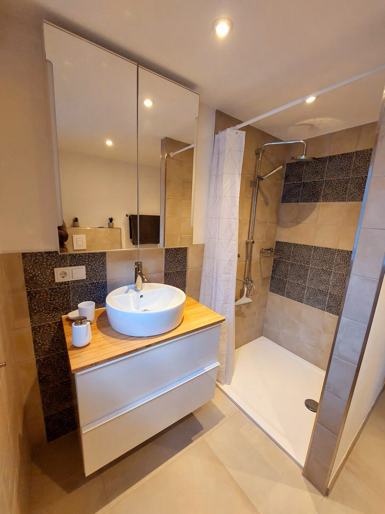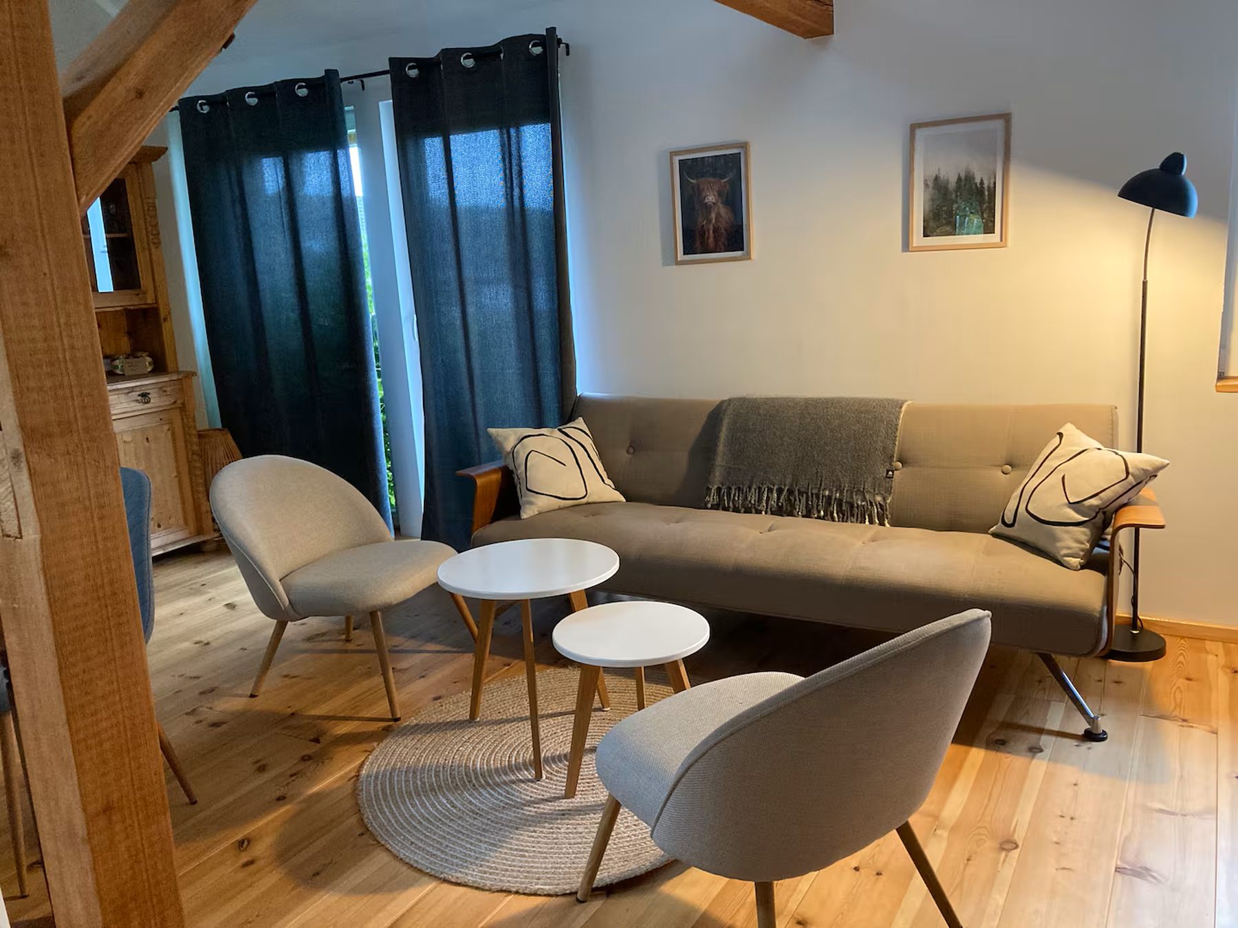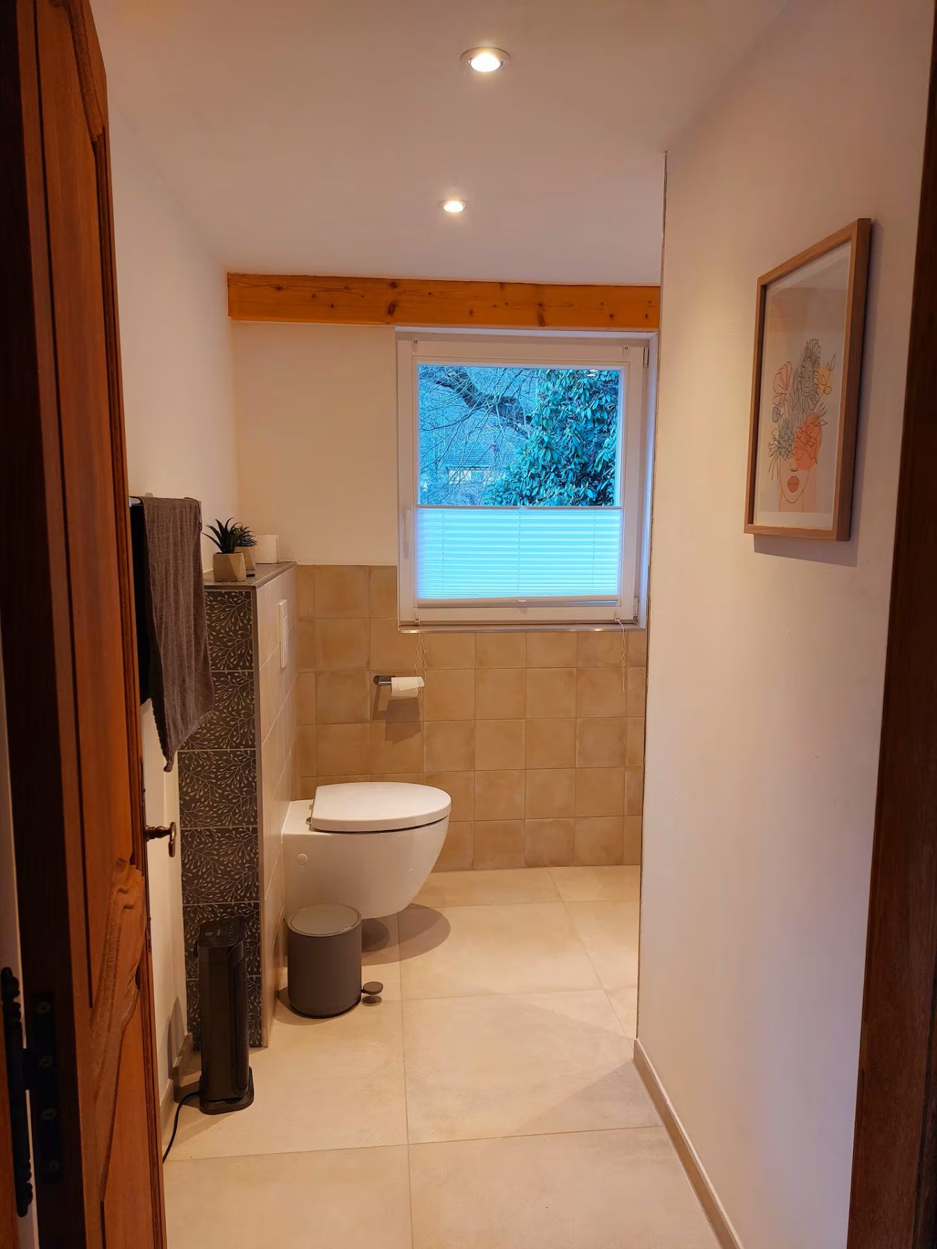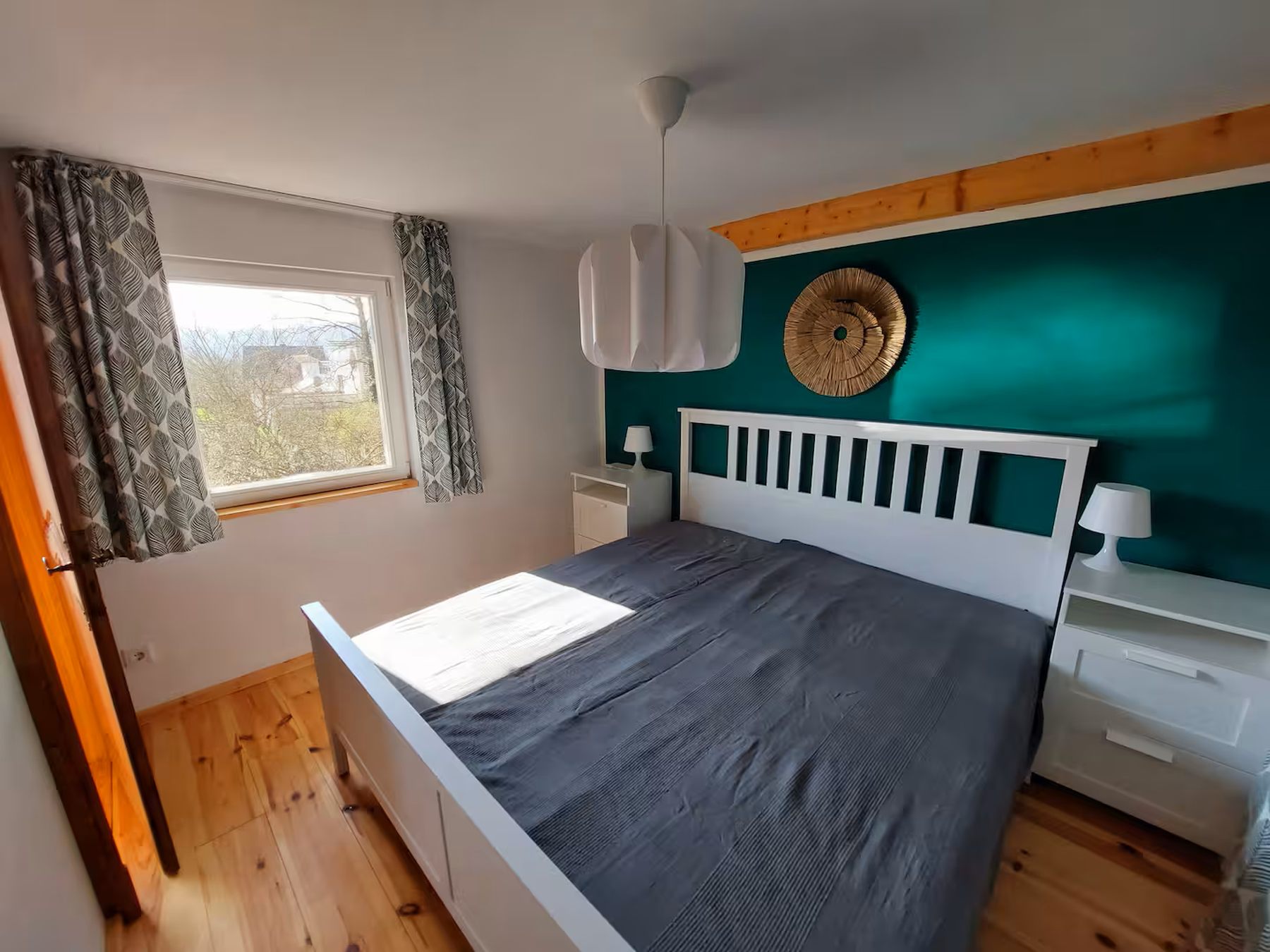 Die Ferienwohnung haben wir 2024 fertiggestellt. Dabei haben wir besonderen Wert auf nachhaltigen und ressourcenschonenden Materialeinsatz gelegt (ökologisches Dämmmaterial, Naturholzboden, aufgearbeitete alte Holztüren aus Wohnhaus).