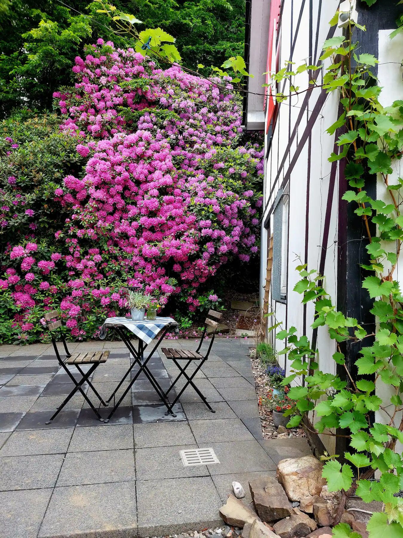 Die Ferienwohnung in der Scheune (unten drunter ist unser Schuppen) könnt ihr natürlich komplett nutzen und auf der Terrasse zwischen der Scheune und unserem Haus könnt ihr gerne grillen und chillen. Und die Feuerschale anmachen. Bitte Kohle selber mitbringen, Holz für die Feuerschale gerne auf Anfrage.