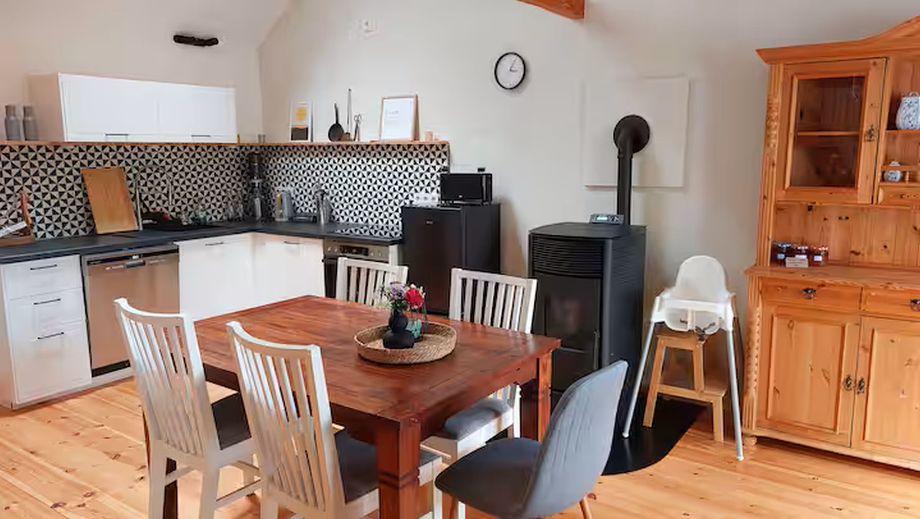 In der Wohnung findet ihr alles, was ihr für einen angenehmen Aufenthalt braucht: eine vollausgestattete Küche (inkl. Spülmaschine, Herd, Backofen, Kühlschrank inkl. Gefrierfach) , ausreichend Geschirr, Fön, Handtücher und Soda-Streamer. Kinder-bzw. Babyausstattung ist vorhanden (Plastikgeschirr & Besteck, abwischbare Tischdecke, Hochstuhl, Babybett – auf Anfrage Treppen- und Pelletofengitter).