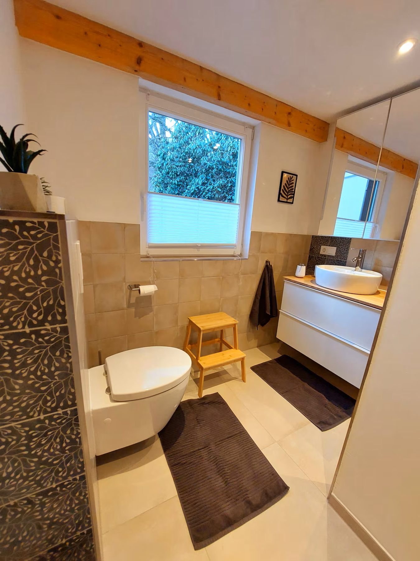 Mit dem Pelletofen haben wir uns für eine nachhaltige Heizmethode entschieden. Dank isoliertem Boden, Wänden und Dach hält die Wärme super in der Ferienwohnung – und im Sommer bleibt es schön kühl. Falls es euch doch mal in den Zimmern oder im Bad zu frisch sein sollte, haben wir noch kleine mit Naturstrom betriebene Elektroheizungen für euch bereitgestellt.