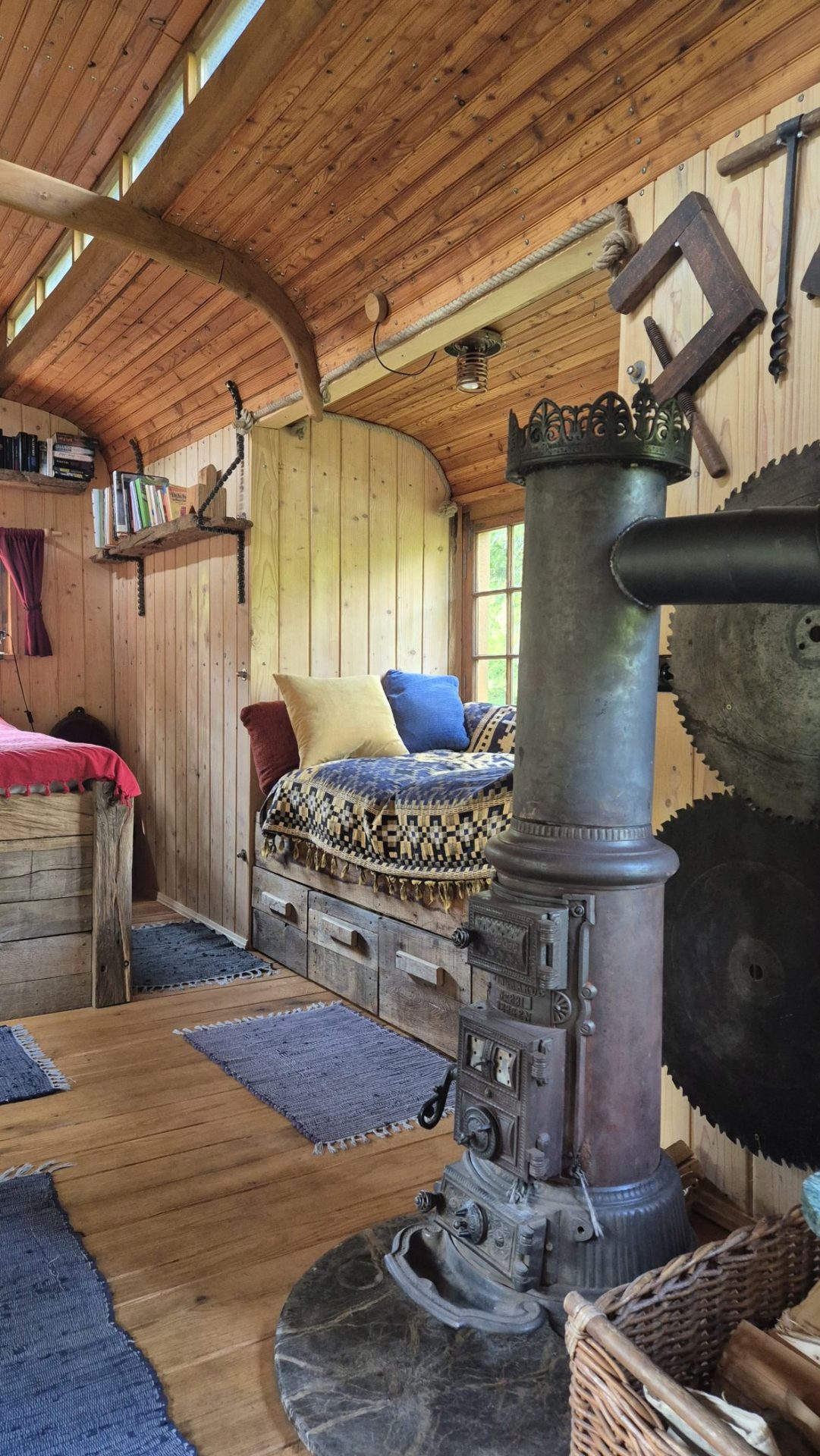 Der antike norwegische Holzofen bringt kuschelige Wärme.